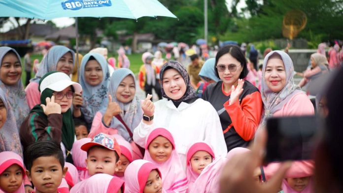 ” Hari ini kita tidak hanya bergerak untuk sehat, tapi juga bergerak untuk mengapresiasi. Karena di balik senyum ceria anak-anak PAUD kita, ada sosok luar biasa yang tanpa pamrih memberikan waktu, perhatian, dan kasih sayangnya- Dialah Bunda PAUD,” katanya.