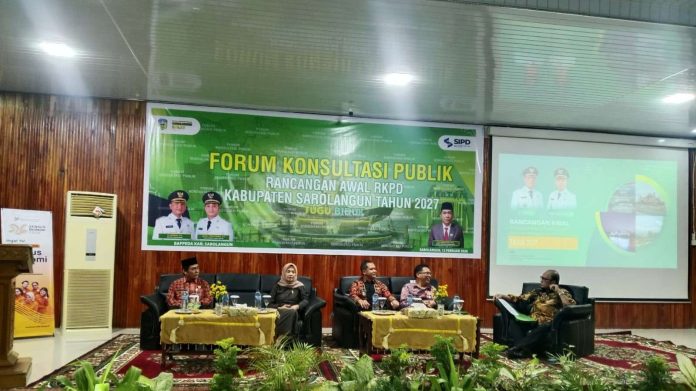 SAROLANGUN EKSPRES  – Wakil Bupati Sarolangun Gerry Trisatwika membuka secara langsung Forum Konsultasi Publik (FKP) Rancangan Awal (Ranwal) RKPD Kabupaten Sarolangun Tahun 2027, Kamis (12/02/2026) di Aula Kantor Bappeda.
